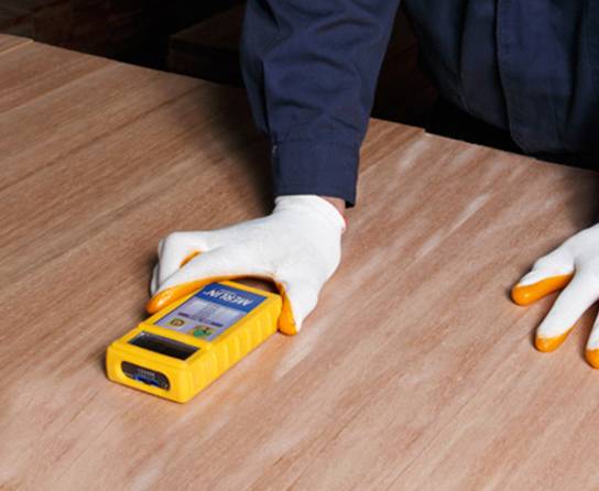 其次,檢查地面的含水率,可用含水率測試儀測量地面含水率,普通地面的要求標準<20%,鋪設(shè)地熱的地板要求標準<10%。如果地面含水率過高,地板就容易吸水膨脹,造成地板起拱、起鼓、響聲等問題,因此若地面含水率超過標準值,要進行除濕。